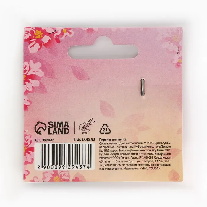 Пирсинг для пупка «Стиль», 5×2 см — Характеристики
