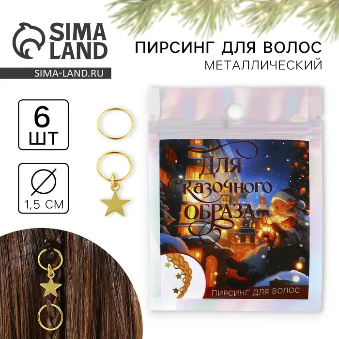 Пирсинг для волос новогодний «Для сказочного образа», набор 6 шт — Характеристики