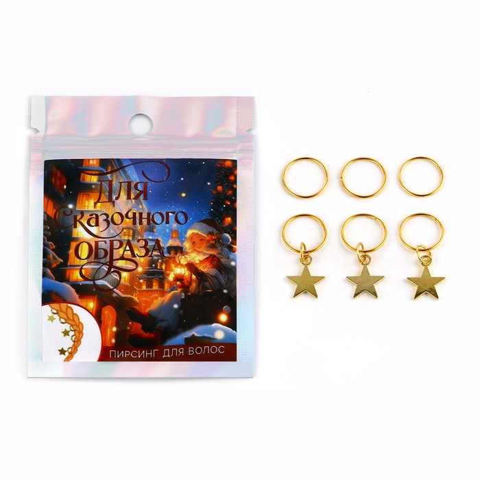 Пирсинг для волос новогодний «Для сказочного образа», набор 6 шт