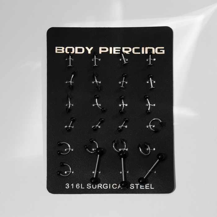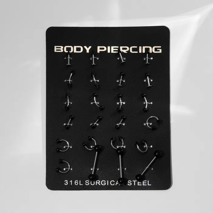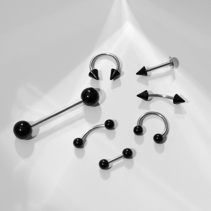 Пирсинг набор «Хардкор», 8 видов, чёрный в серебре — Характеристики