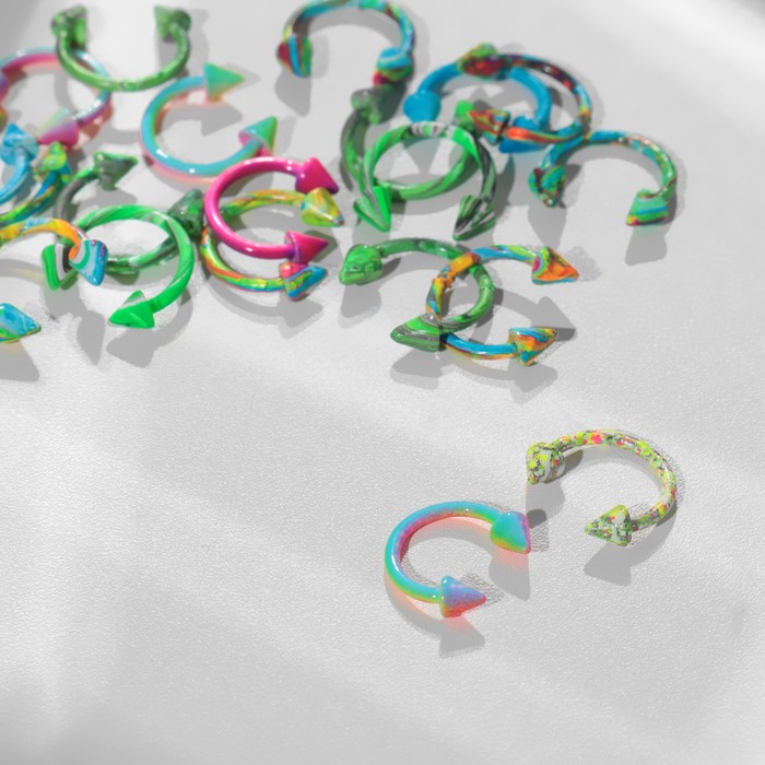 Создайте выразительный акцент в образе с этим уникальным пирсингом в бровь, выполненным в виде стрелы. Диаметр дуо-круга составляет 0,8 см, что обеспечивает комфортное ношение и надежную фиксацию. Микс ярких цветов — Чёрный, Зелёный, Розовый, Голубой, Жёлтый, Разноцветный — позволяет подобрать украшение под любой стиль и настроение.