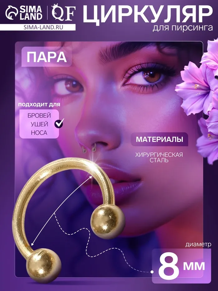 - Удобство и безопасность: циркулярная конструкция позволяет легко фиксировать пирсинг без дополнительных застёжек.