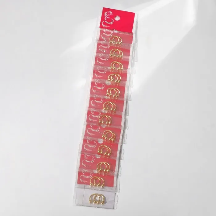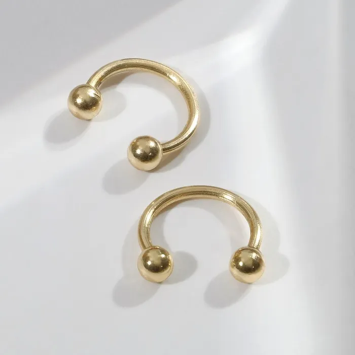 Изготовленный из высококачественной стали с надёжным золотистым покрытием, этот набор из двух украшений гарантирует долговечность и безопасность ношения. Оптимальная длина 0,8 см обеспечивает комфорт и удобство при использовании, а классическая циркулярная форма с шариком — простоту установки и надёжную фиксацию.