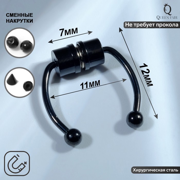 Обновите свой стиль с помощью универсального фейк-пирсинга, который идеально сочетает в себе современный дизайн и комфорт. Этот носовой аксессуар длиной 12 мм выполнен из прочной стали в классическом чёрном цвете, что придает ему стильный и лаконичный вид. Благодаря магнитной фиксации и сменным насадкам, вы можете легко менять образ, не прибегая к болезненным процедурам или постоянным проколам.