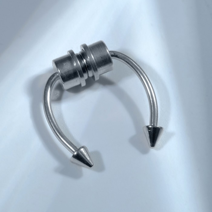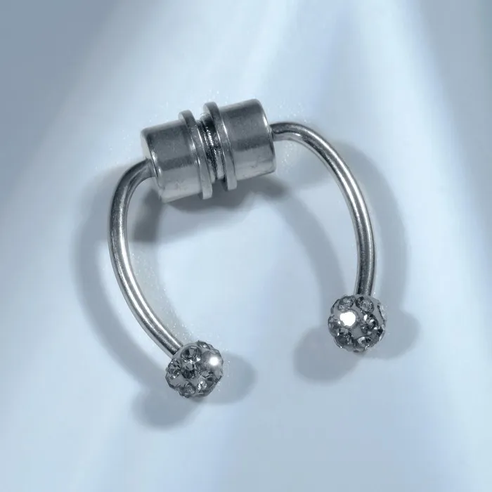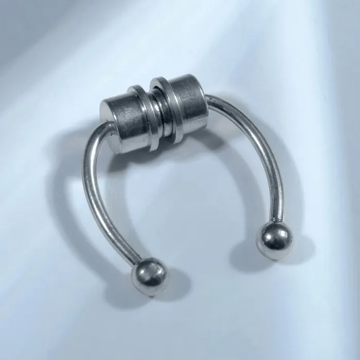 Изготовленный из прочной стали с серебристым покрытием и белой вставкой, он обладает привлекательным внешним видом и высокой надежностью. Магнитная фиксация обеспечивает легкое и безопасное закрепление, позволяя быстро надевать и снимать украшение без боли или повреждений кожи. Такой аксессуар станет отличным решением для тех, кто ценит комфорт, стиль и возможность менять образ в любой момент.