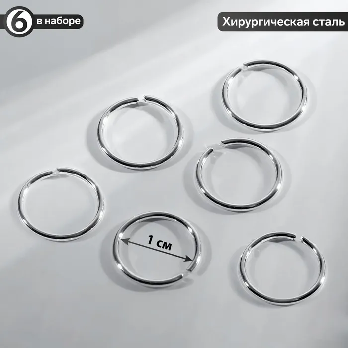 Пирсинг в нос «Колечко» классика, d=10 мм, набор 6 шт., цвет серебро — Характеристики