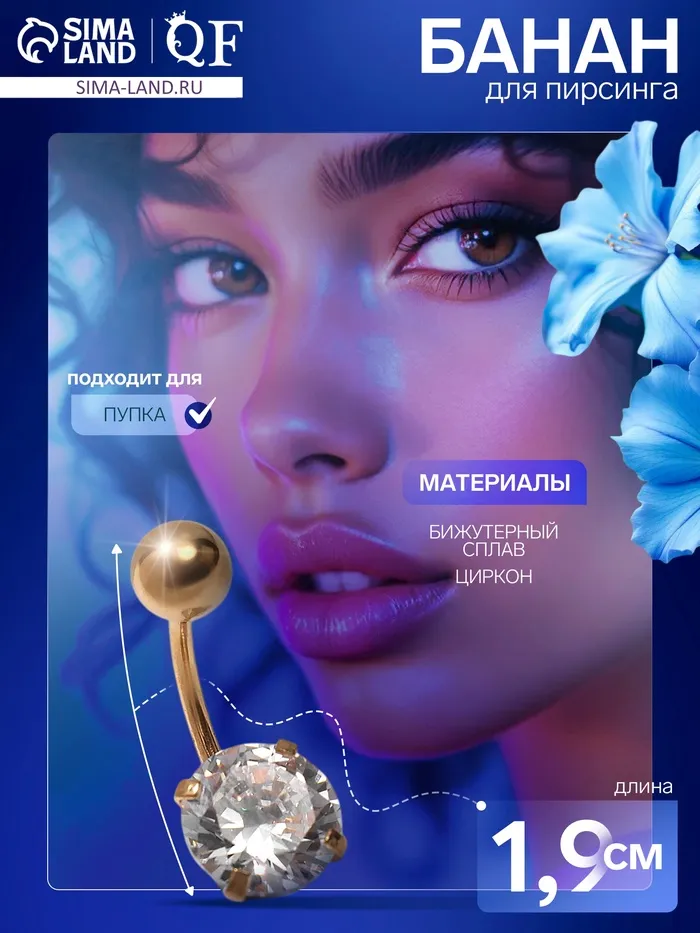 - Применение — подходит для постоянного ношения в пупке, создавая эффект стильного украшения.