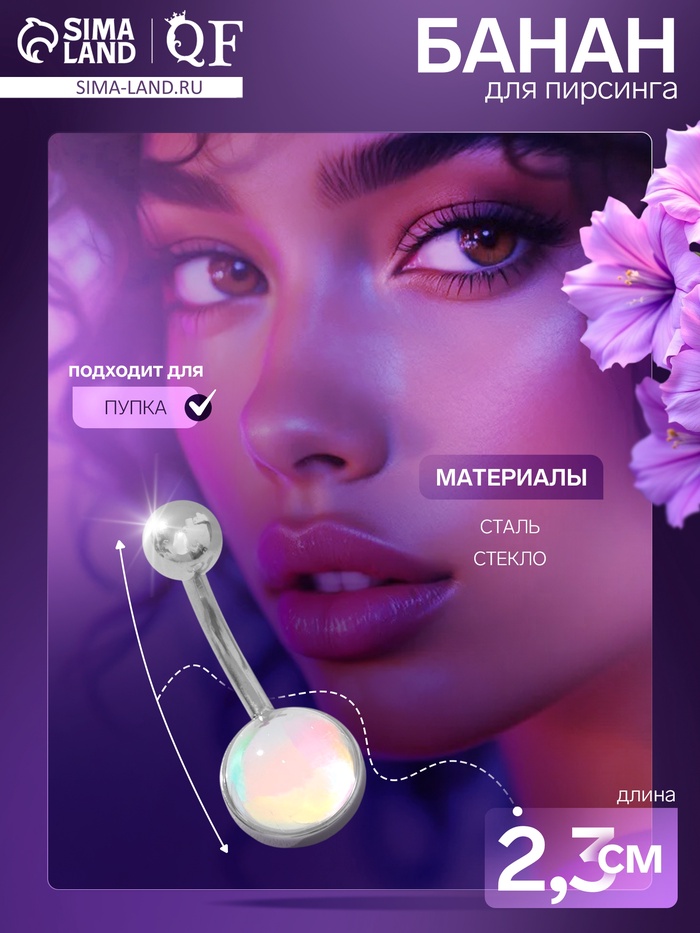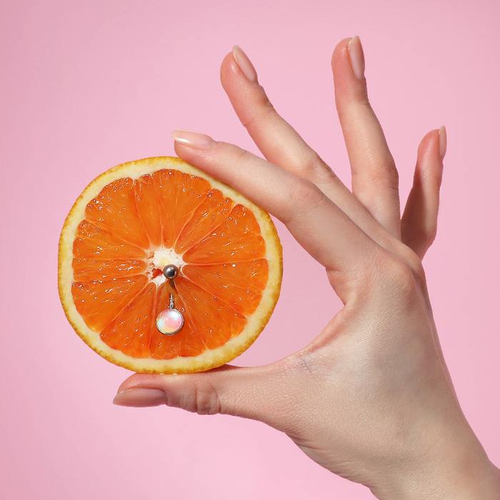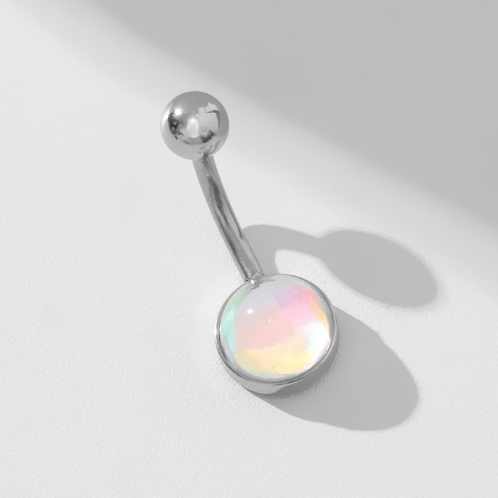 Современный дизайн пирсинга в пупок объединяет в себе яркость и изящество, благодаря радужному стеклу, гармонично обрамлённому в серебристую стальную основу. Этот аксессуар привлекает внимание своей живой игрой оттенков, создавая эффект мерцания при каждом движении и подчёркивая индивидуальность носительницы.