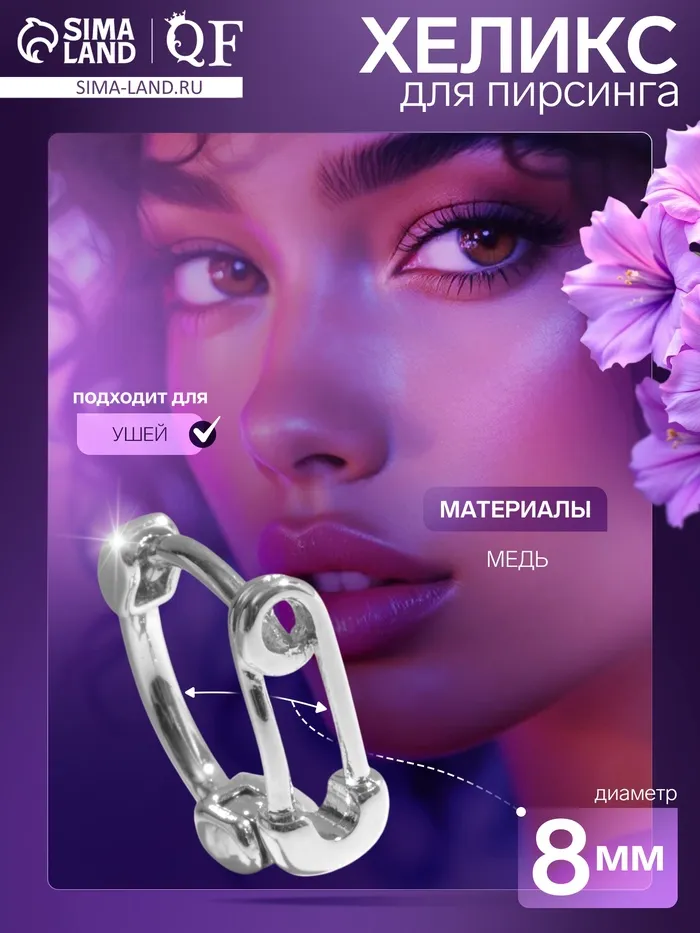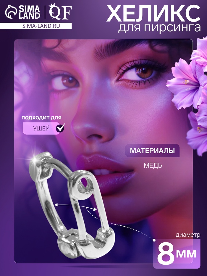 Пирсинг в ухо (хеликс) «Булавка», d=8 мм, цвет серебро — Характеристики