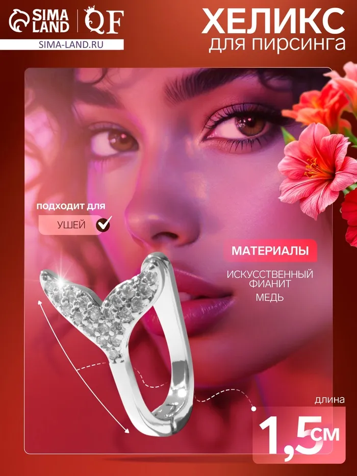 Длина 1,5 см идеально подходит для аккуратного акцента на хряще уха, а материал из меди с серебряным покрытием обеспечивает долговечность и комфорт. Вставка из искусственного фианита добавляет изделию яркости и блеска, создавая эффект нежного сияния при каждом движении головы.