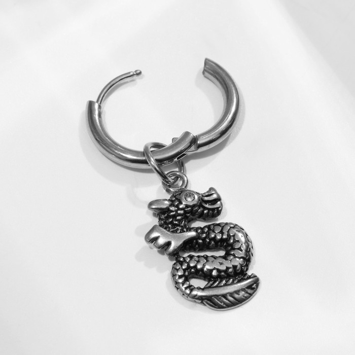 Этот стильный пирсинг в ухо с кольцом-динозавром превращает классический аксессуар в яркое выражение индивидуальности и силы. Его серебристый оттенок и аккуратный диаметр 18 мм создают эффектное сочетание современного дизайна и древней символики, подчеркивая вашу уникальность.