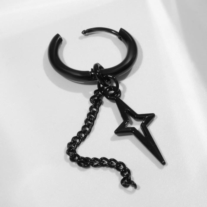 Пирсинг в ухо «Кольцо» звезда полярная с цепью, d=15 мм, чёрный — Характеристики