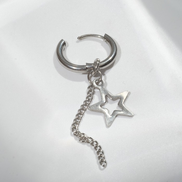 Пирсинг в ухо «Кольцо» звезда с цепью, d=15 мм, цвет серебро — Характеристики