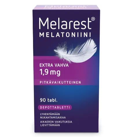 Melarest Melatoniini Extra Vahva - препарат мелатонина с замедленным высвобождением, при которых таблетка из-за своей структуры растворяется медленнее, а мелатонин высвобождается более равномерно в течение примерно 5 часов. Таким образом, уровень мелатонина в организме остается стабильным, а эффект длится дольше.