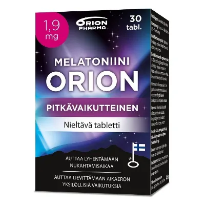 Melatoniini Orion длительного действия в дозе 1,9 мг помогает сократить время засыпания и смягчить индивидуальные последствия разницы во времени.