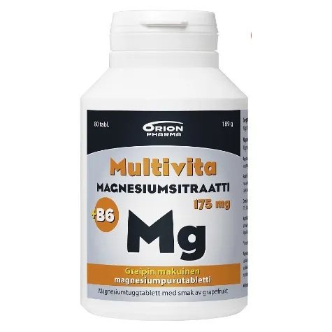 Multivita Magnesiumsitraatti +B6 - это высокоусваиваемый цитрат магния со вкусом грейпфрута.