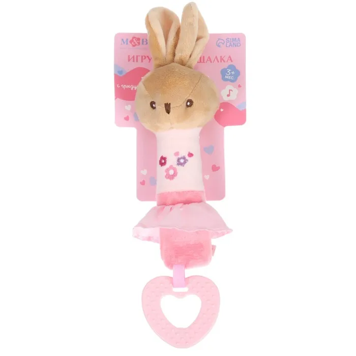 Пищалка - погремушка M&B «Зайка», с прорезывателем, от 3 мес.