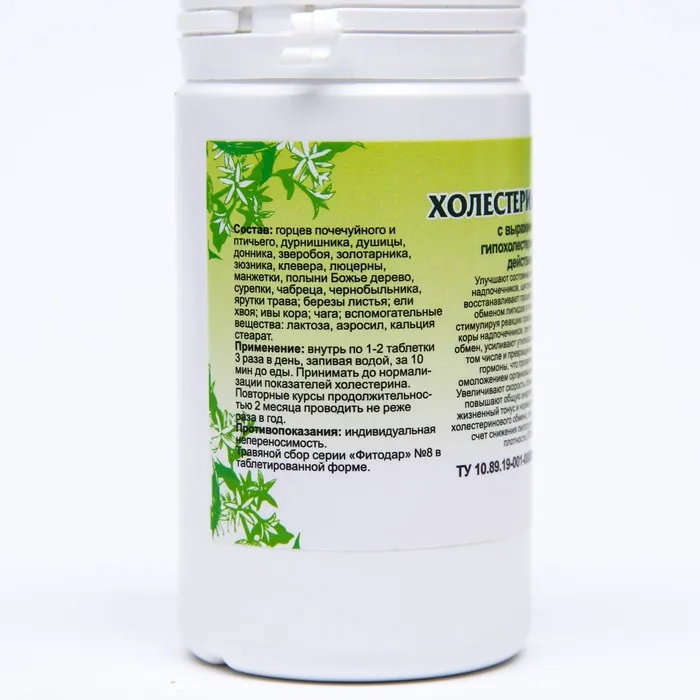 Способ применения: по 1-2 таблетки 3 раза в день растворить в 100 мл теплой некипяченой воды, либо проглотить не разжевывая, запив водой. Принимать до нормализации показателей холестерина.