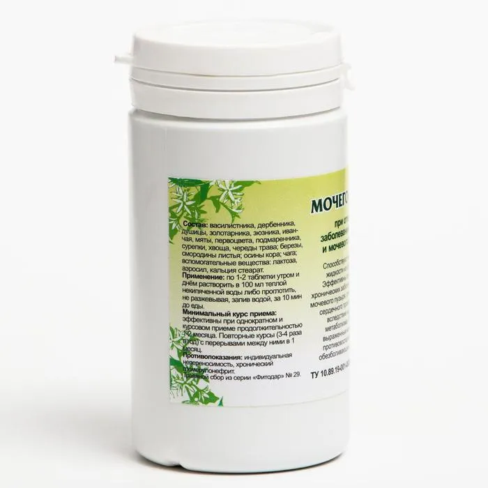 Состав: адониса, астрагала, василистника, василька, горца, дербенника, душицы, золотарника, зюзника, иван-чая, мяты, первоцвета, подмаренника, посконника, сурепки, хвоща, цикория, череды трава; березы, смородины листья; ели хвоя; осины кора; чага; вспомогательные вещества: лактоза, аэросил, кальция стеарат.
