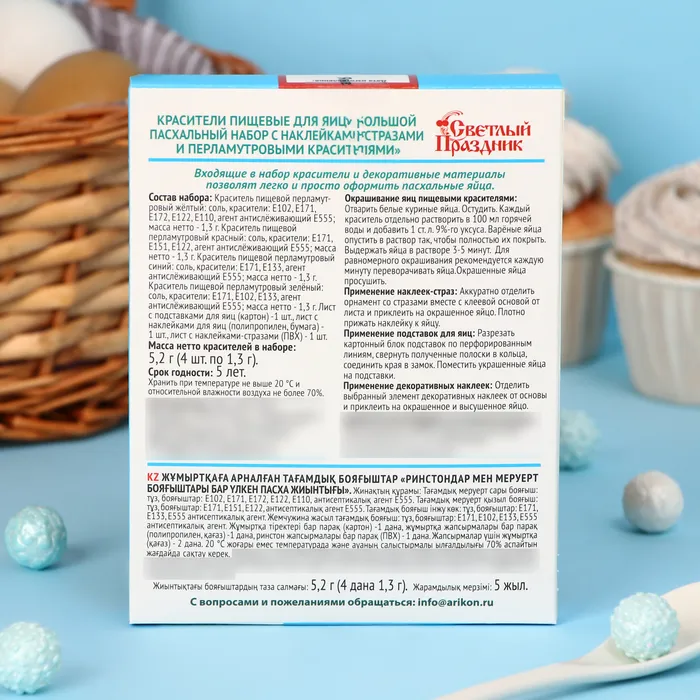 Подарите своему празднику атмосферу радости и волшебства с красителями пищевыми "Большой пасхальный набор с наклейками-стразами" и создайте незабываемые воспоминания об этом замечательном дне!
