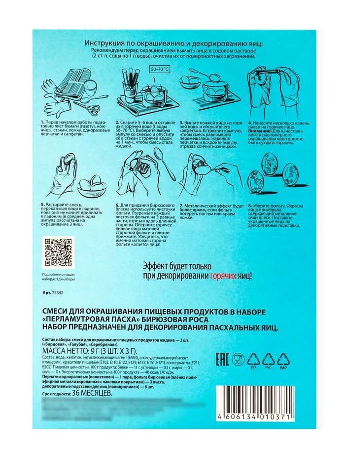Кроме того, «Перламутровая Пасха» станет прекрасным подарком для друзей и близких, которые любят искусство декорирования и ценят стиль. Подарите радость и возможность проявить свои художественные способности с помощью этого замечательного набора и создайте уникальные украшения для вашего праздника!