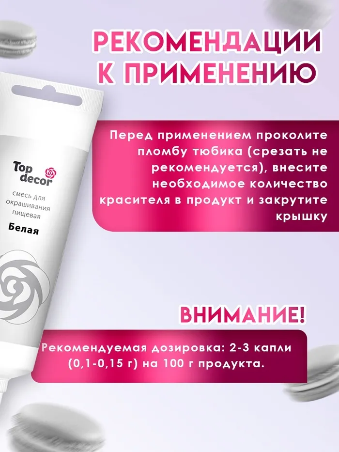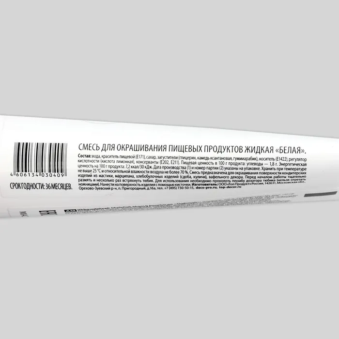 Пищевой краситель Top Decor гелевый, белый, 100 г — Характеристики