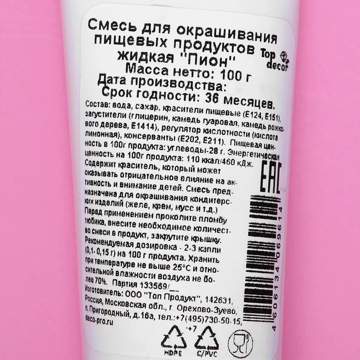 Пищевой краситель Top Decor гелевый «Пион», 100 г — Характеристики