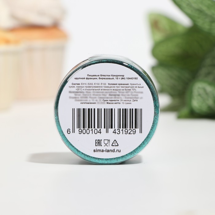 Пищевые блёстки КондиМир крупной фракции, бирюзовые, 10 г — Характеристики