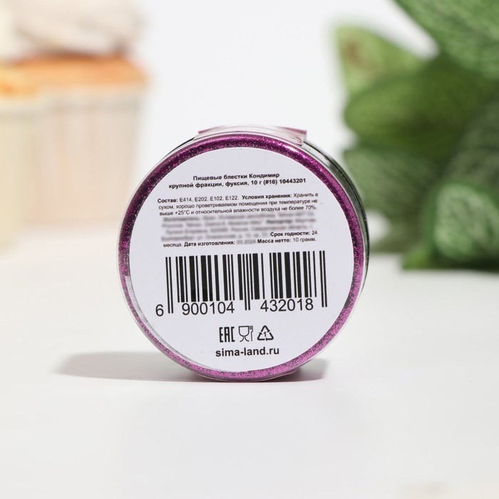 Пищевые блёстки КондиМир крупной фракции, фуксия, 10 г — Характеристики