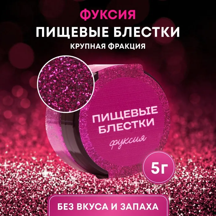 Пищевые блёстки КондиМир крупной фракции, фуксия, 5 г