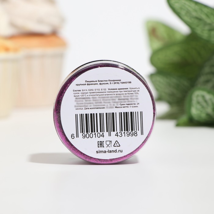 Пищевые блёстки КондиМир крупной фракции, фуксия, 5 г — Характеристики