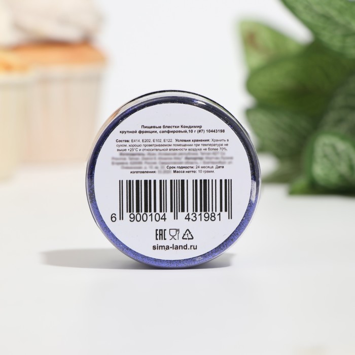 Пищевые блёстки КондиМир крупной фракции, сапфировые, 10 г — Характеристики