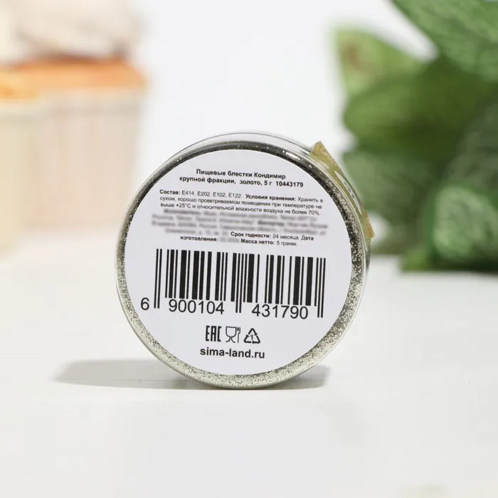 Пищевые блёстки КондиМир крупной фракции, золото, 5 г — Характеристики