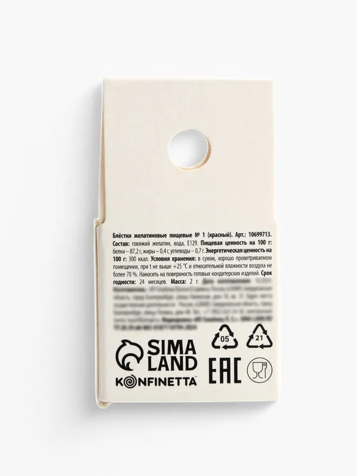Пищевые блёстки желатиновые «Красный», 2 г. — Характеристики
