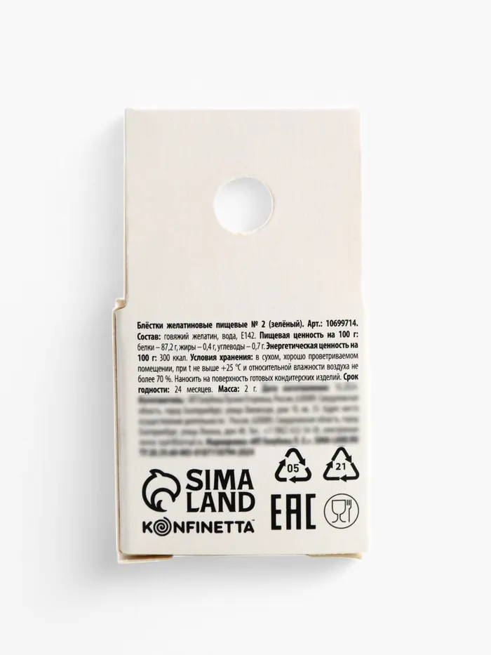 Пищевые блёстки желатиновые «Зелёный», 2 г. — Характеристики
