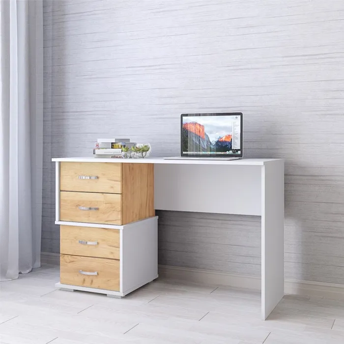 Письменный стол Сити - это функциональная и стильная мебель для рабочего пространства. Сочетает в себе удобство хранения документов, канцелярии и других необходимых вещей благодаря наличию вместительных выдвижных ящиков. Просторная рабочая поверхность позволяет комфортно разместить ноутбук, документы или другие рабочие материалы. Стол выполнен из качественных материалов, что обеспечивает его долговечность и устойчивость к механическим повреждениям. Дизайн стола может варьироваться от классического до современного, позволяя ему гармонично вписаться в любой интерьер. Выдвижные ящики обеспечивают быстрый доступ к нужным вещам, а их конструкция обеспечивает плавное открытие и закрытие.