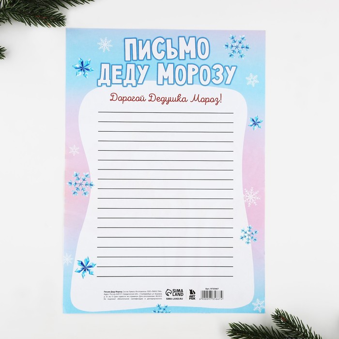 Письмо Деду Морозу, А4 «Время волшебства» — Характеристики