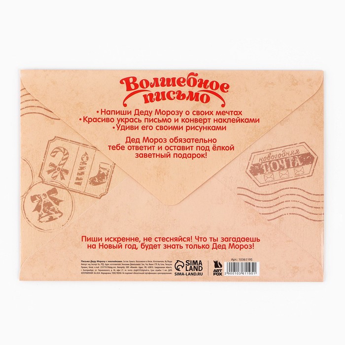 Письмо Деду Морозу, конверт А5, с наклейками «Новогодняя почта. Волшебное письмо» — Характеристики