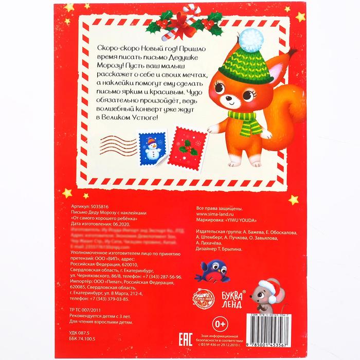 Письмо Деду Морозу с наклейками «От самого хорошего ребёнка», 12 стр. — Характеристики