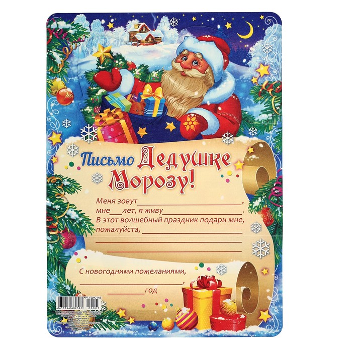 Письмо Деду Морозу складное «Дед Мороз с подарками» — Характеристики
