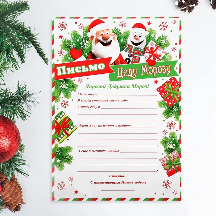 Письмо Деду Морозу «Снеговик», бумага, 21.5×30 см — Характеристики