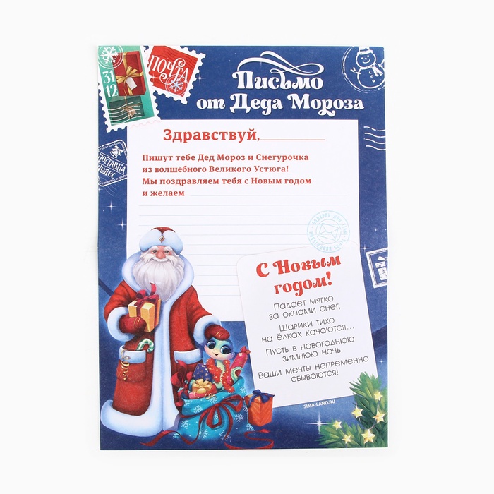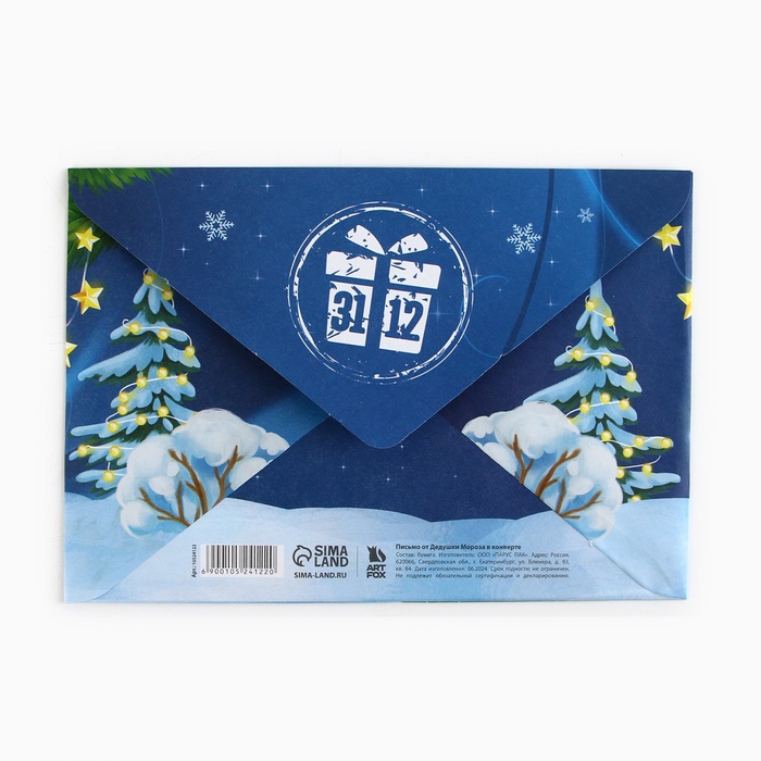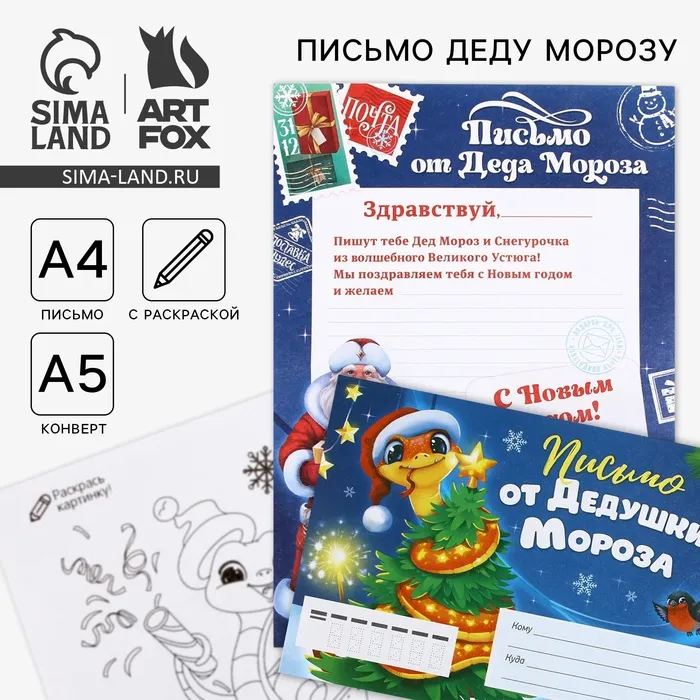 Письмо от Деда Мороза, конверт А5, с раскраской «Новый год: Змейка на ёлочке» — Характеристики