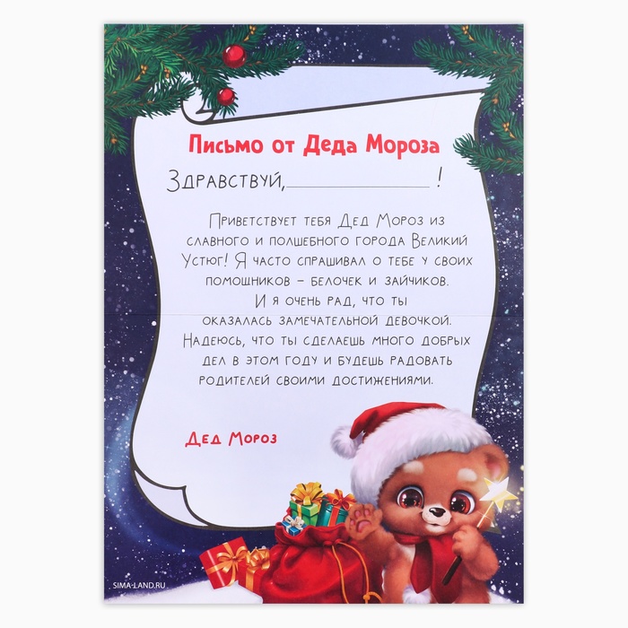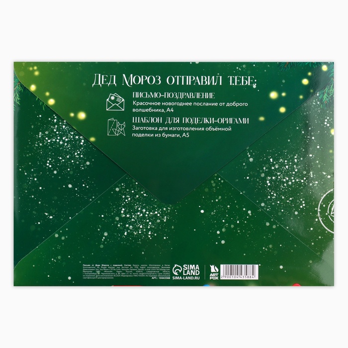 Набор с письмом от Деда Мороза — это уникальный подарок для вашего ребёнка, который позволит ему окунуться в атмосферу волшебства и сказки. Внутри вы найдёте красочное письмо от самого Деда Мороза и новогоднюю поделку.