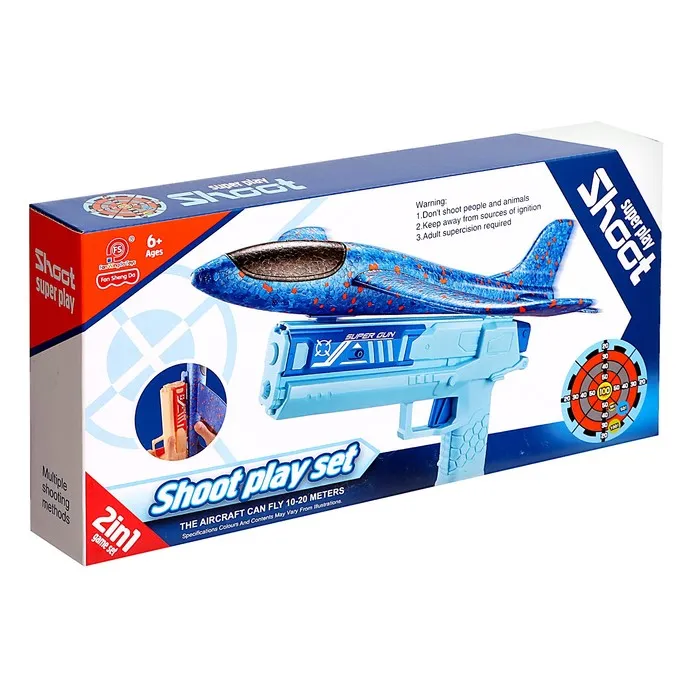 Игрушечный пистолет с самолётом — отличный выбор для активных игр дома и на улице. Он стреляет лёгкими пластиковыми самолётиками, превращая обычное развлечение в динамичное воздушное сражение. Простое управление и безопасные материалы делают его подходящим для детей от 6 лет.