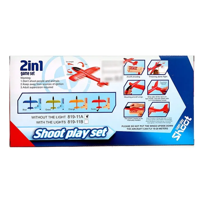 Достаточно зарядить самолёт в пистолет, прицелиться и нажать на курок — снаряд взмывает в воздух. Можно устраивать соревнования, чей самолёт улетит дальше, или придумывать свои игровые сценарии.