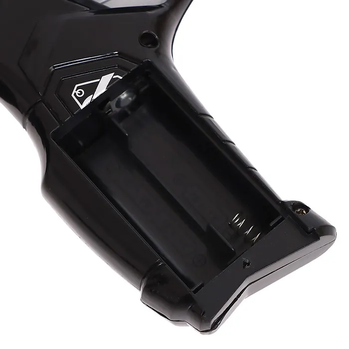 Бластер работает от 3 батареек типа АА, элементы питания в комплект не входят.
