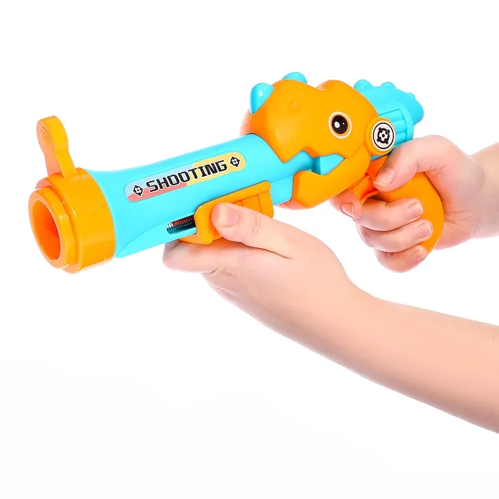 Игрушечный пистолет «Дино» — это двойное удовольствие, ведь он может стрелять разными снарядами! Меняй насадку, заряжай шарики или пульки и готовься к весёлым соревнованиям. Это отличная игрушка для активных игр дома и на свежем воздухе.