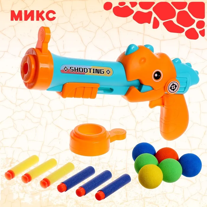 Пистолет «Дино», стреляет мягкими пульками и шариками, МИКС — Характеристики