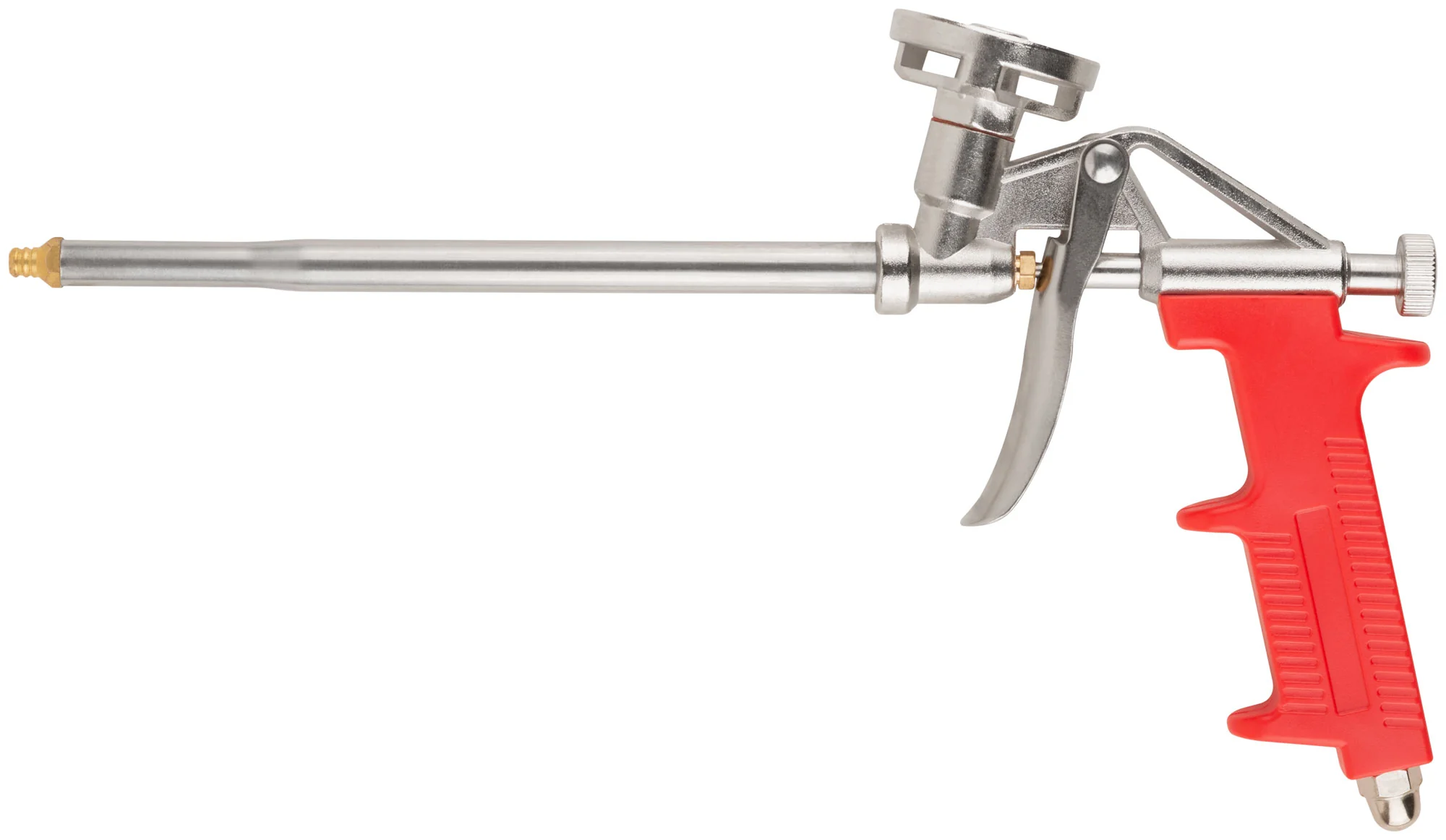 Одно из главных преимуществ этого пистолета — его легкость, всего 340 г, что позволяет работать длительное время без усталости. Удобная конструкция способствует равномерному нанесению монтажной пены, что исключает перерасход материала.