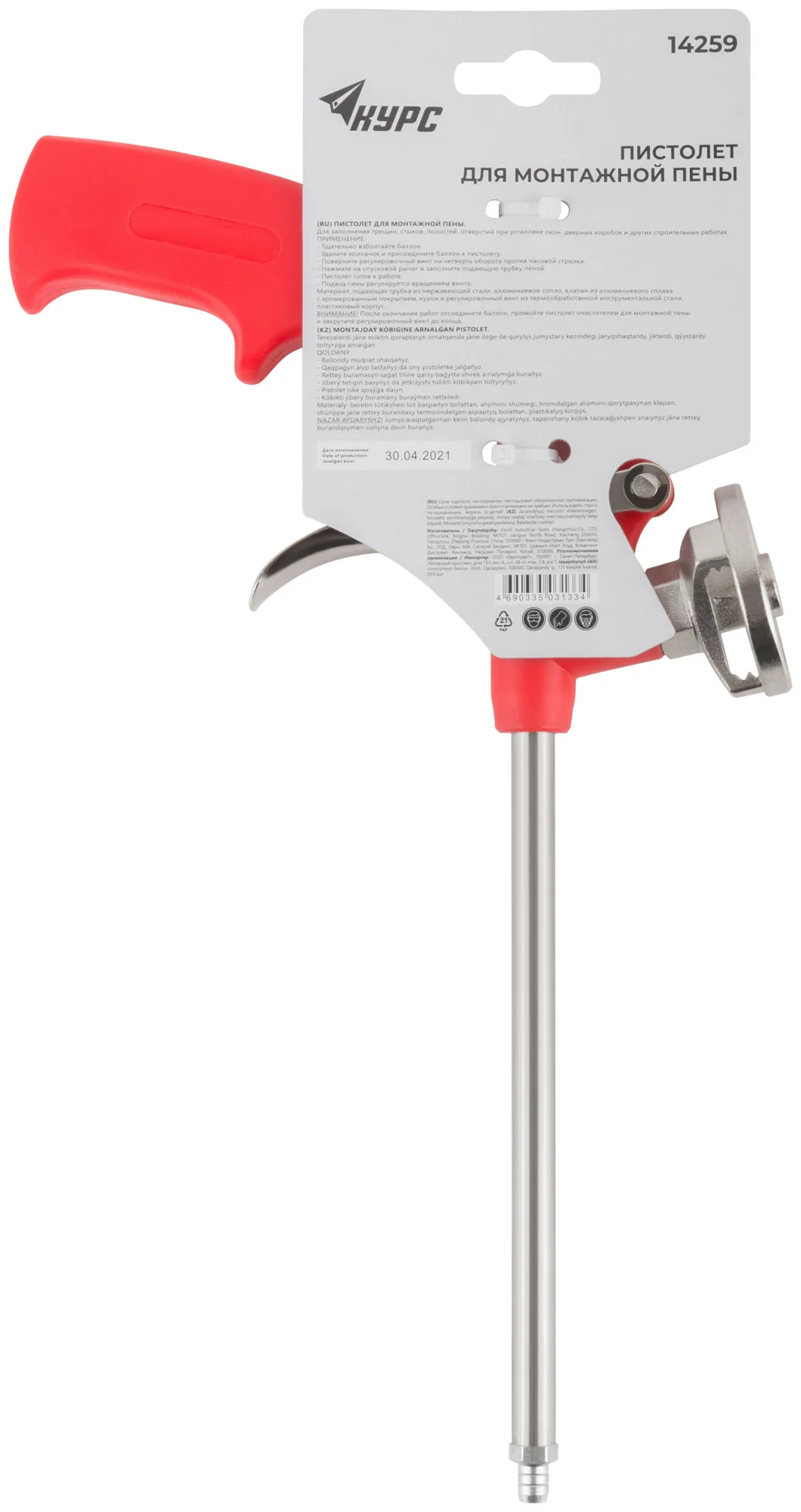 Выберите пистолет для монтажной пены 14259 от бренда КУРС, чтобы сделать ваши строительные и ремонтные работы более эффективными и качественными.